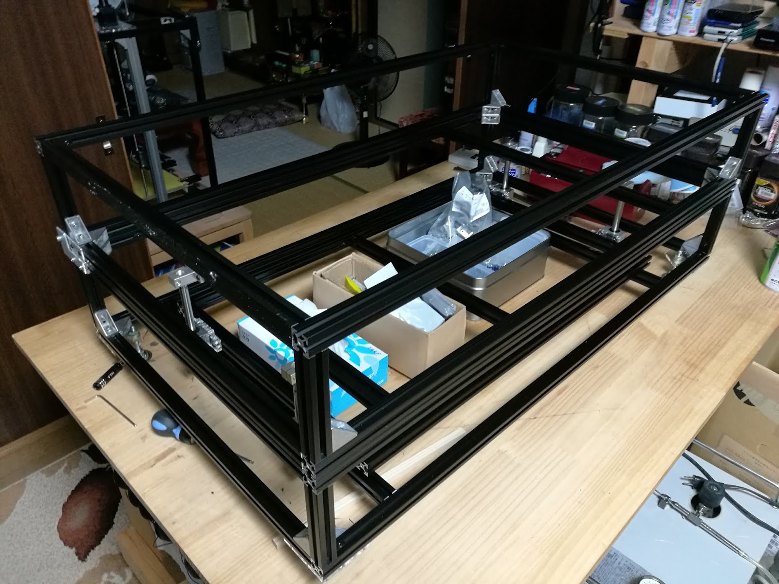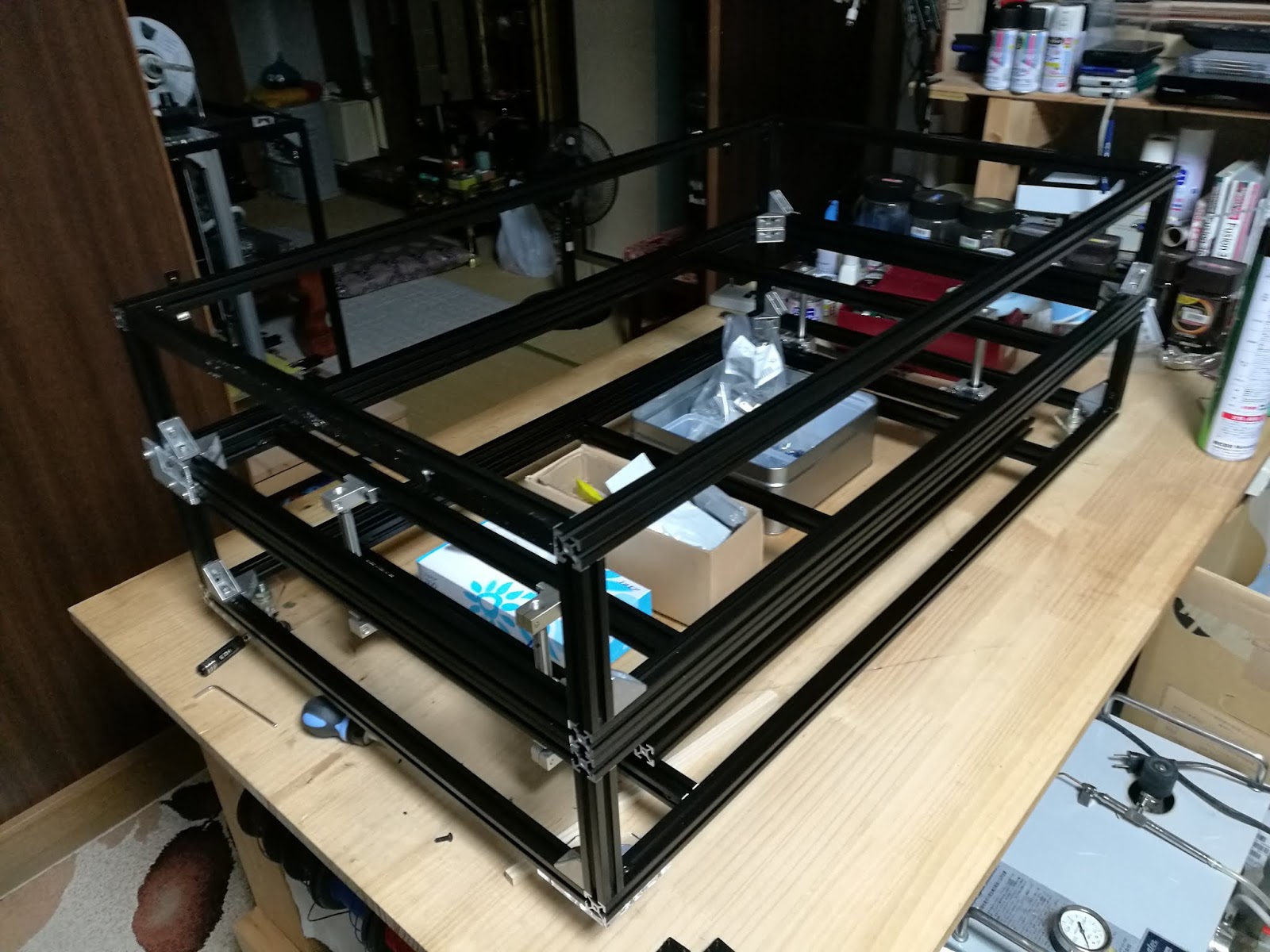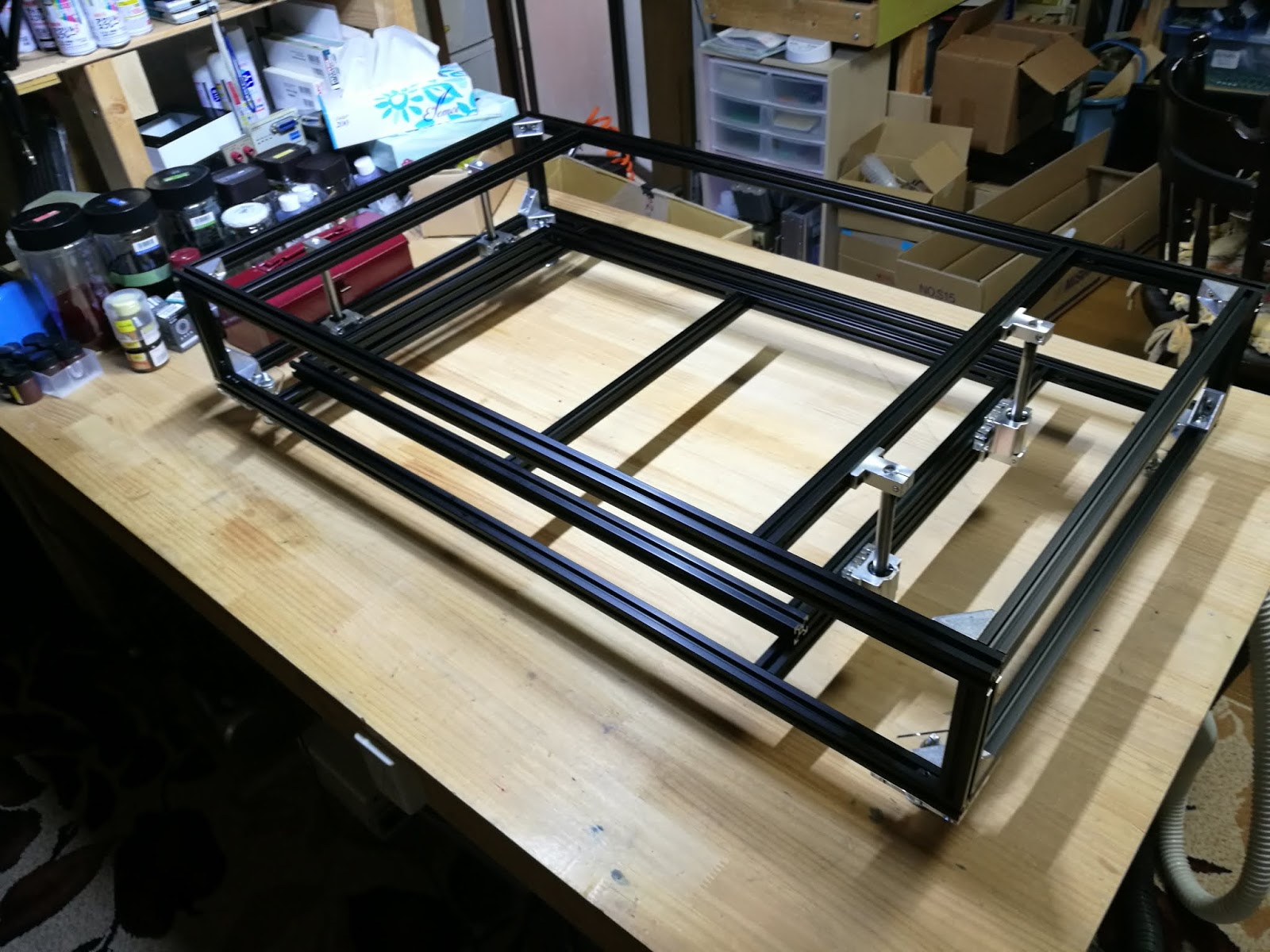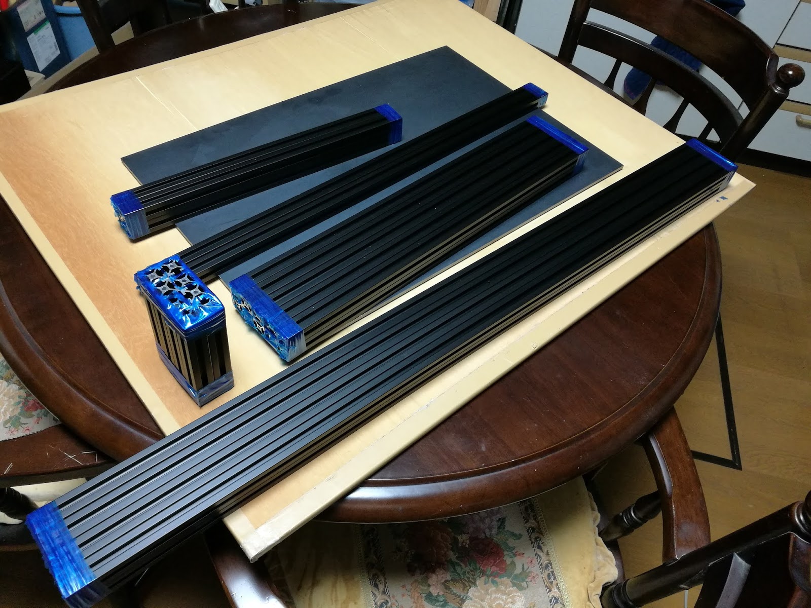 おそらくプラ段(笑)かMDFになるでしょう。せっかくアルミフレーム組がかっこいいのに、おそらく最終的にはかなりダサい外観になると思われます。