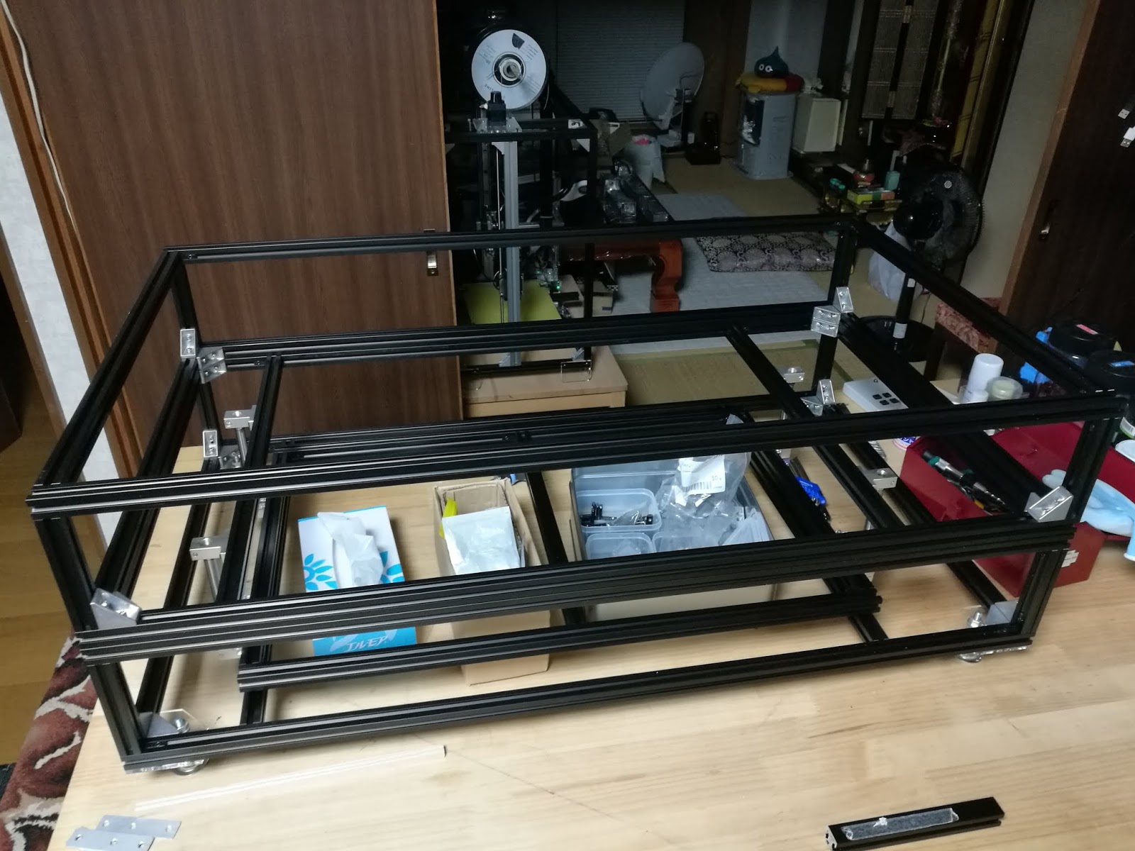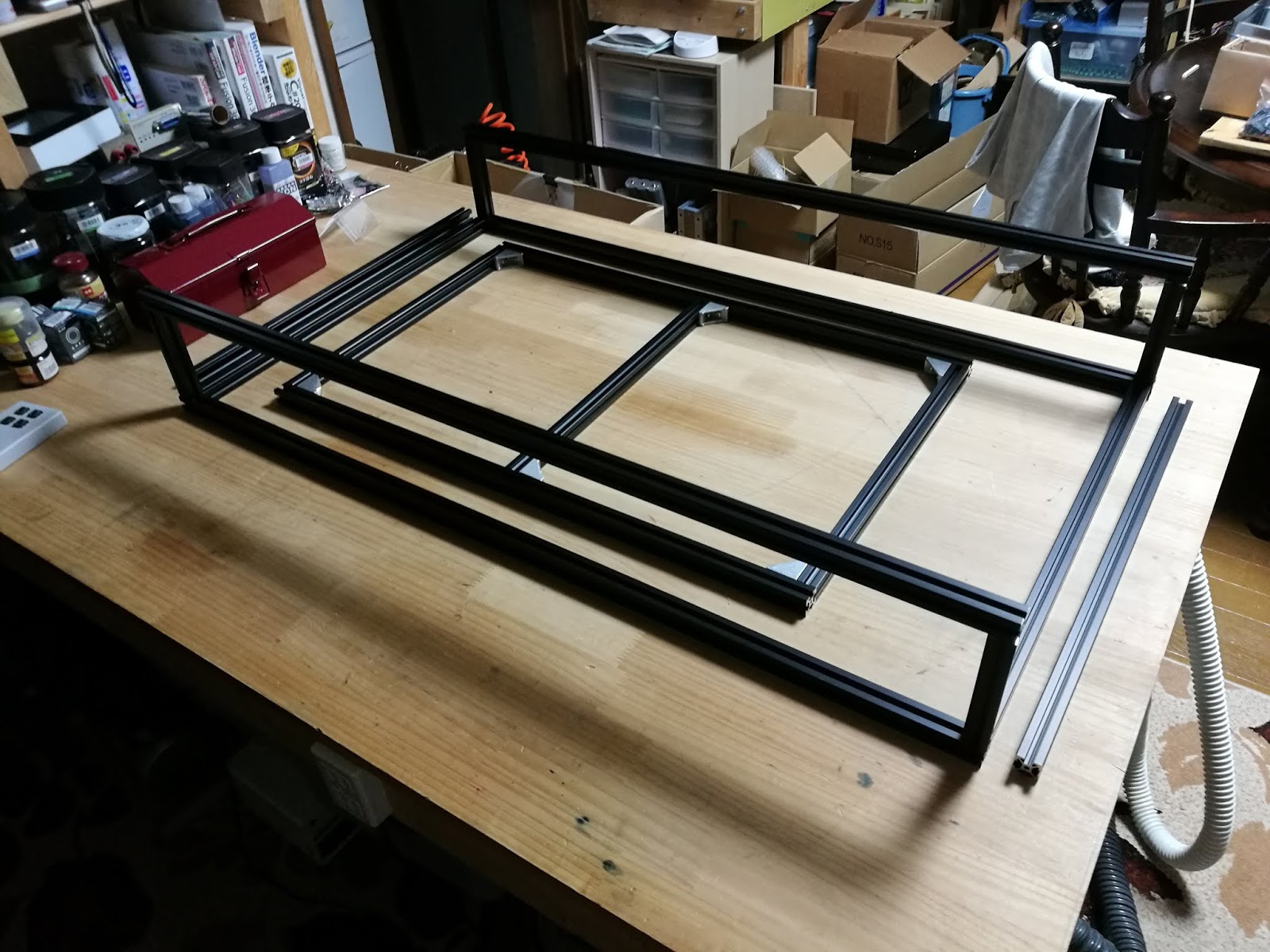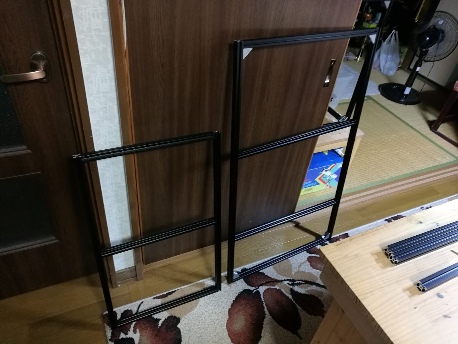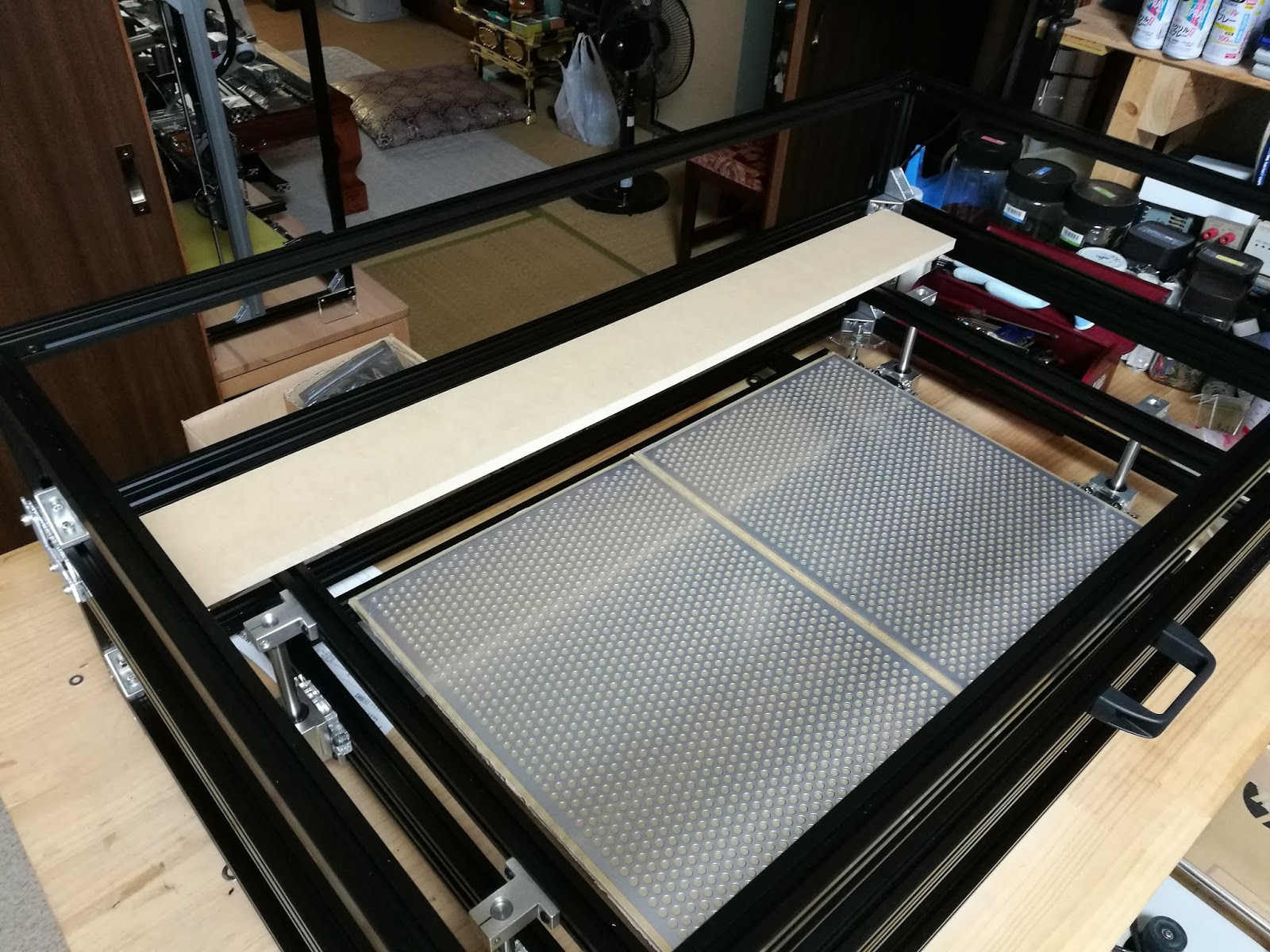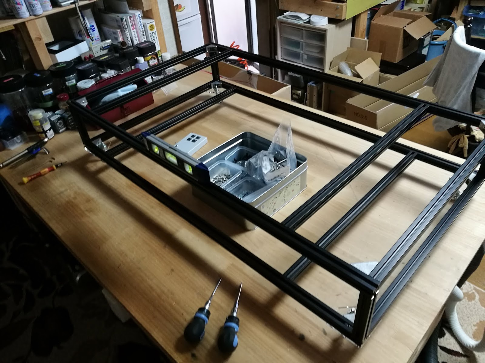 おそらくプラ段(笑)かMDFになるでしょう。せっかくアルミフレーム組がかっこいいのに、おそらく最終的にはかなりダサい外観になると思われます。