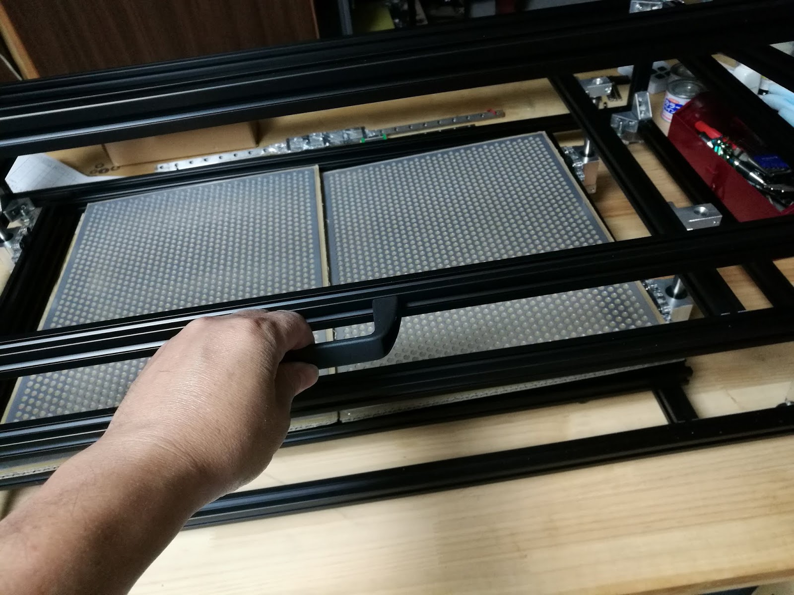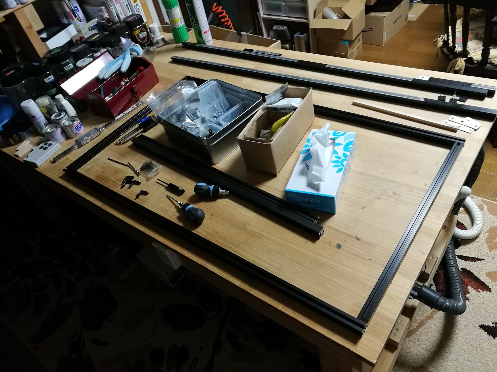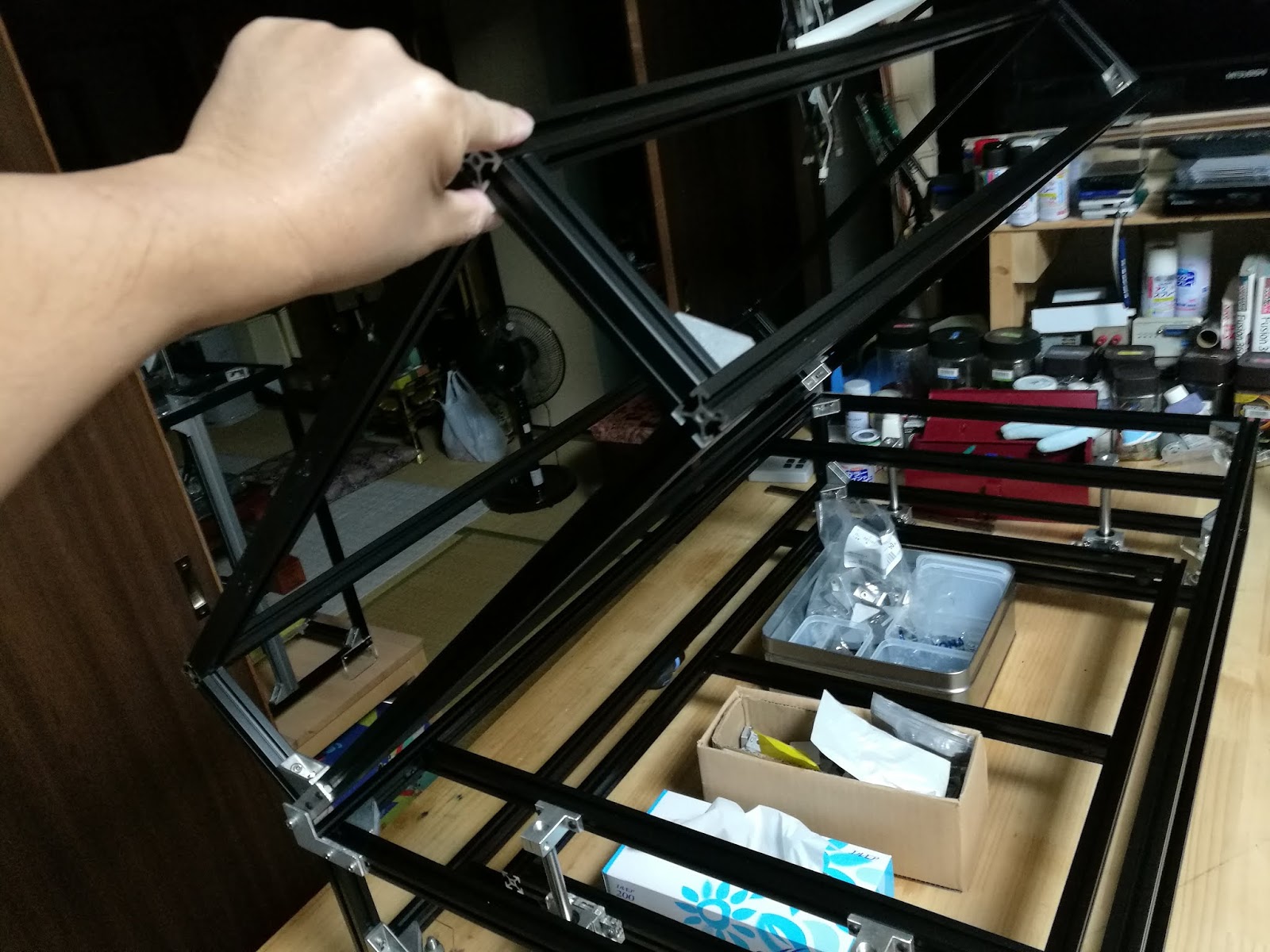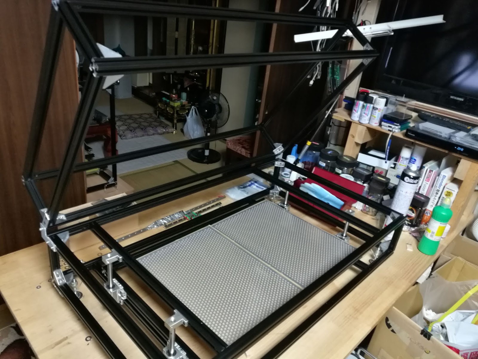 おそらくプラ段(笑)かMDFになるでしょう。せっかくアルミフレーム組がかっこいいのに、おそらく最終的にはかなりダサい外観になると思われます。