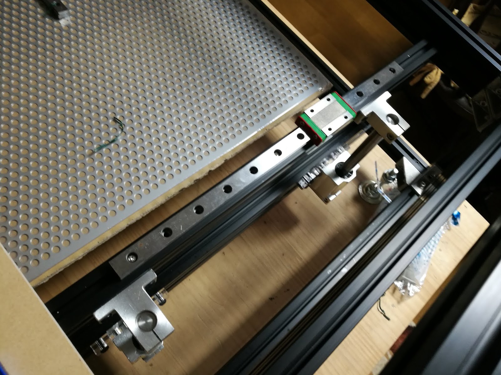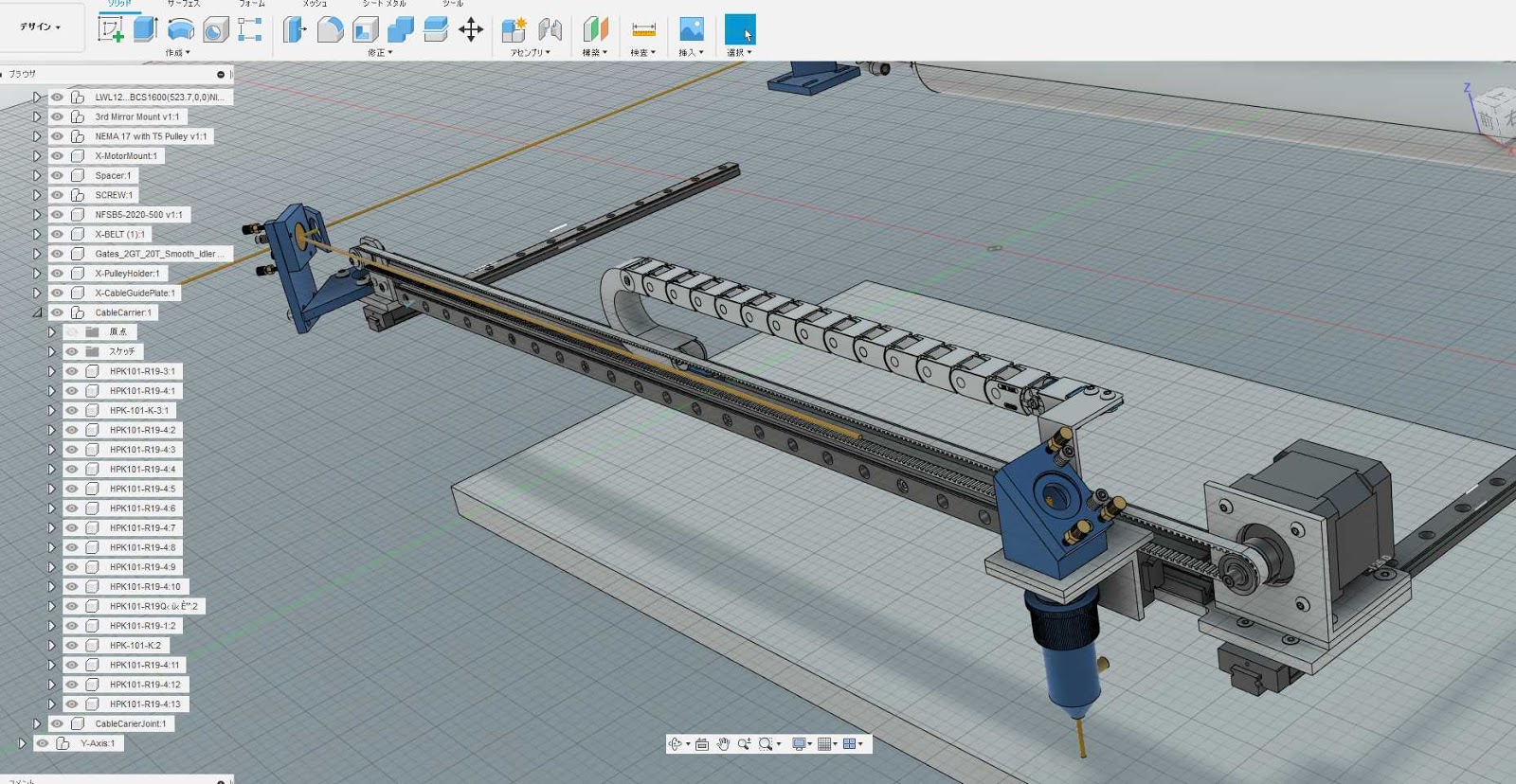 ここも精度にこだわってボールねじにするという選択もあるのですが、悩んだ末に実績があるベルト駆動としています。これで動かしてみてさらに精度が欲しくなったら検討するでもいいかなと思っております。
