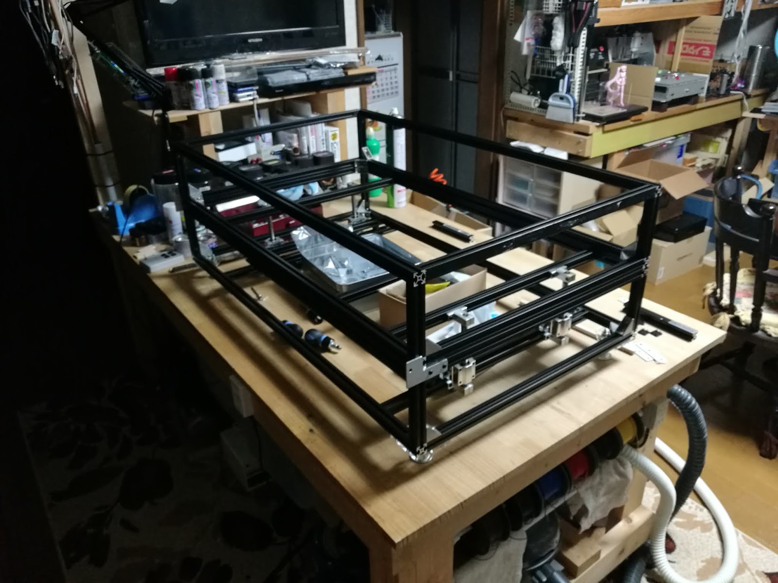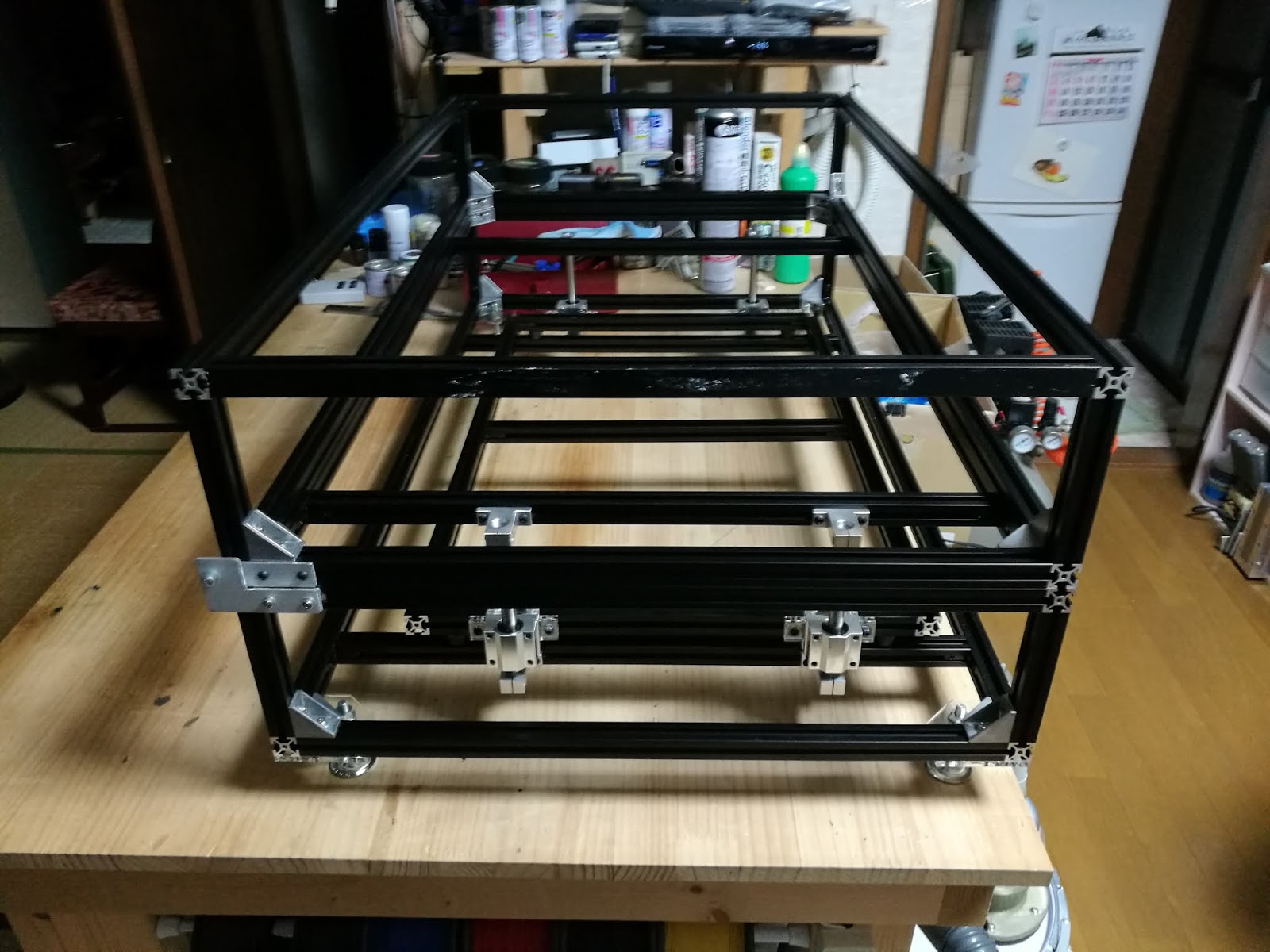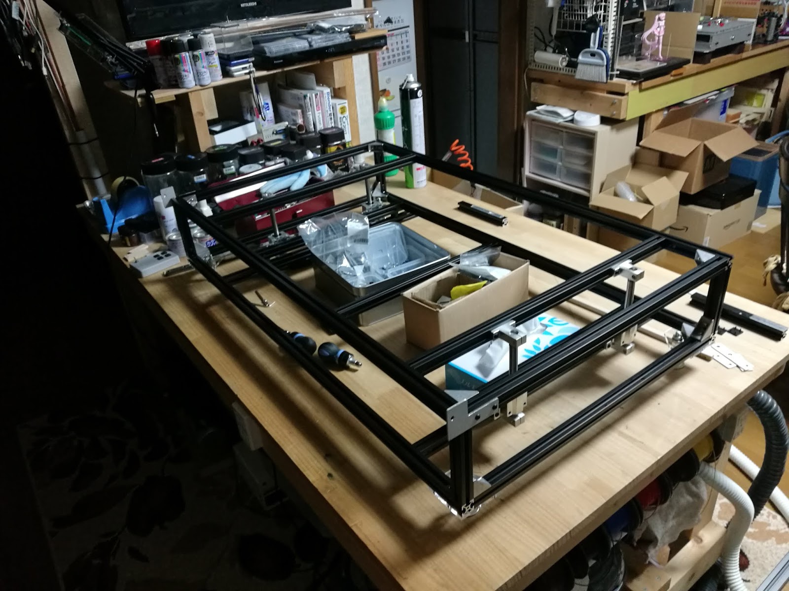 今回はなんと2万円をフレームとブラケット類に投入しました。レーザ加工機をフル自作するのも3台目であります。基本形はこれを最後にしたいという意味を込めて日本国政府より頂戴しました給付金の一部をありがたく使わせていただきました。一日本国民としてここはやはり国内企業にお金が落ちるように使わなければならないのであります。