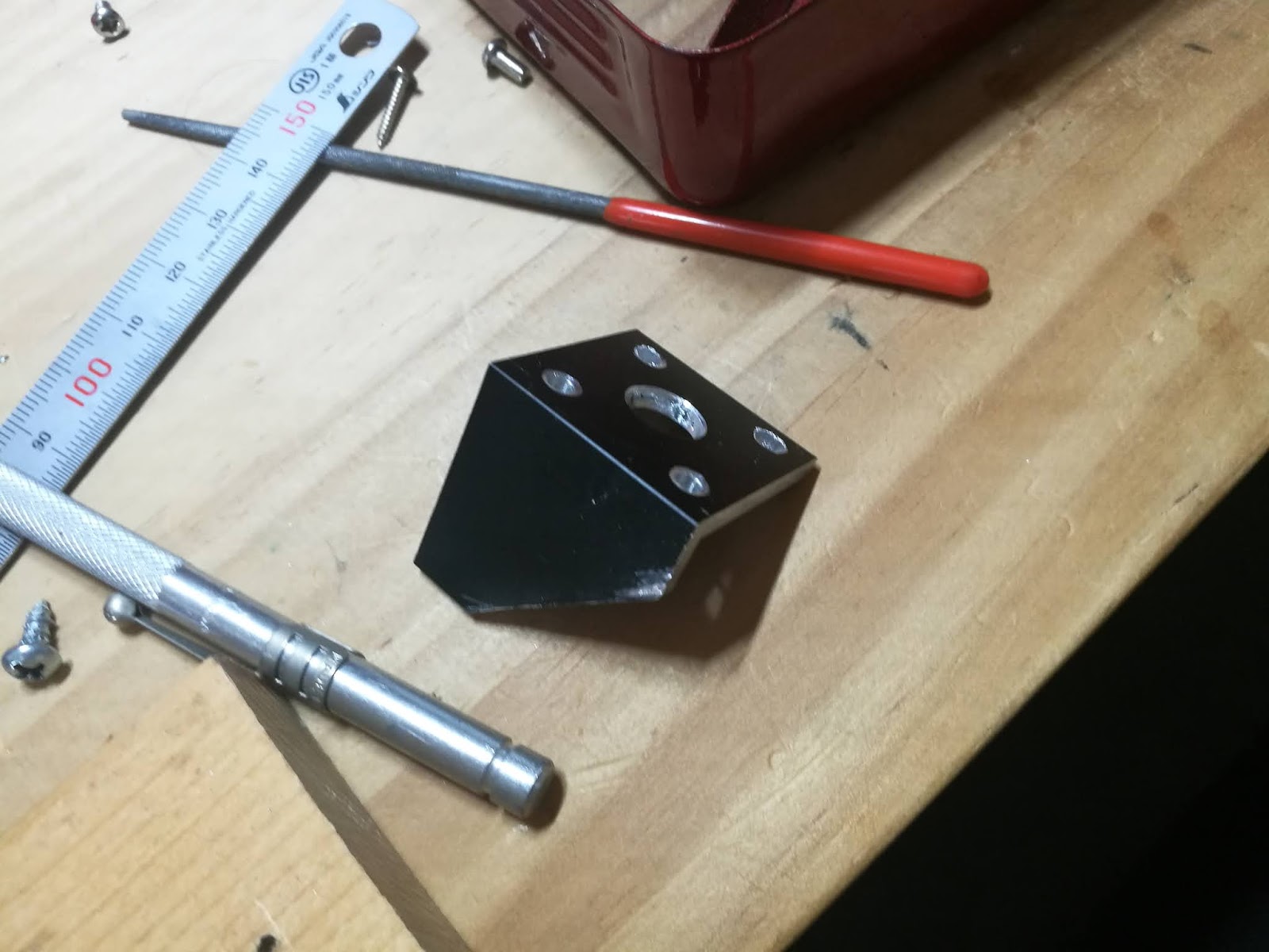 いろいろ考えた結果、昇降ステージの角にもブラケットを出したくないと思い、このアングルパーツで組み直しをしました。