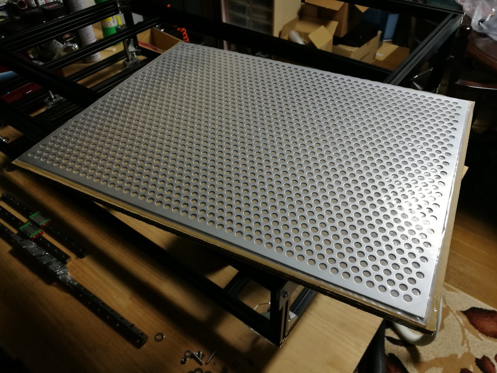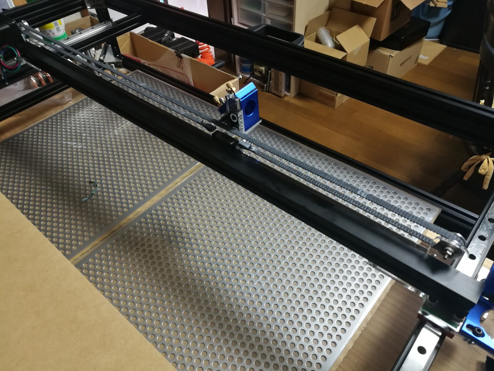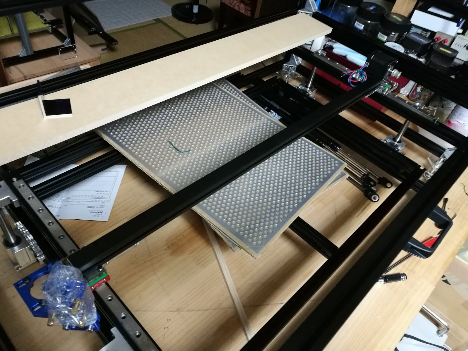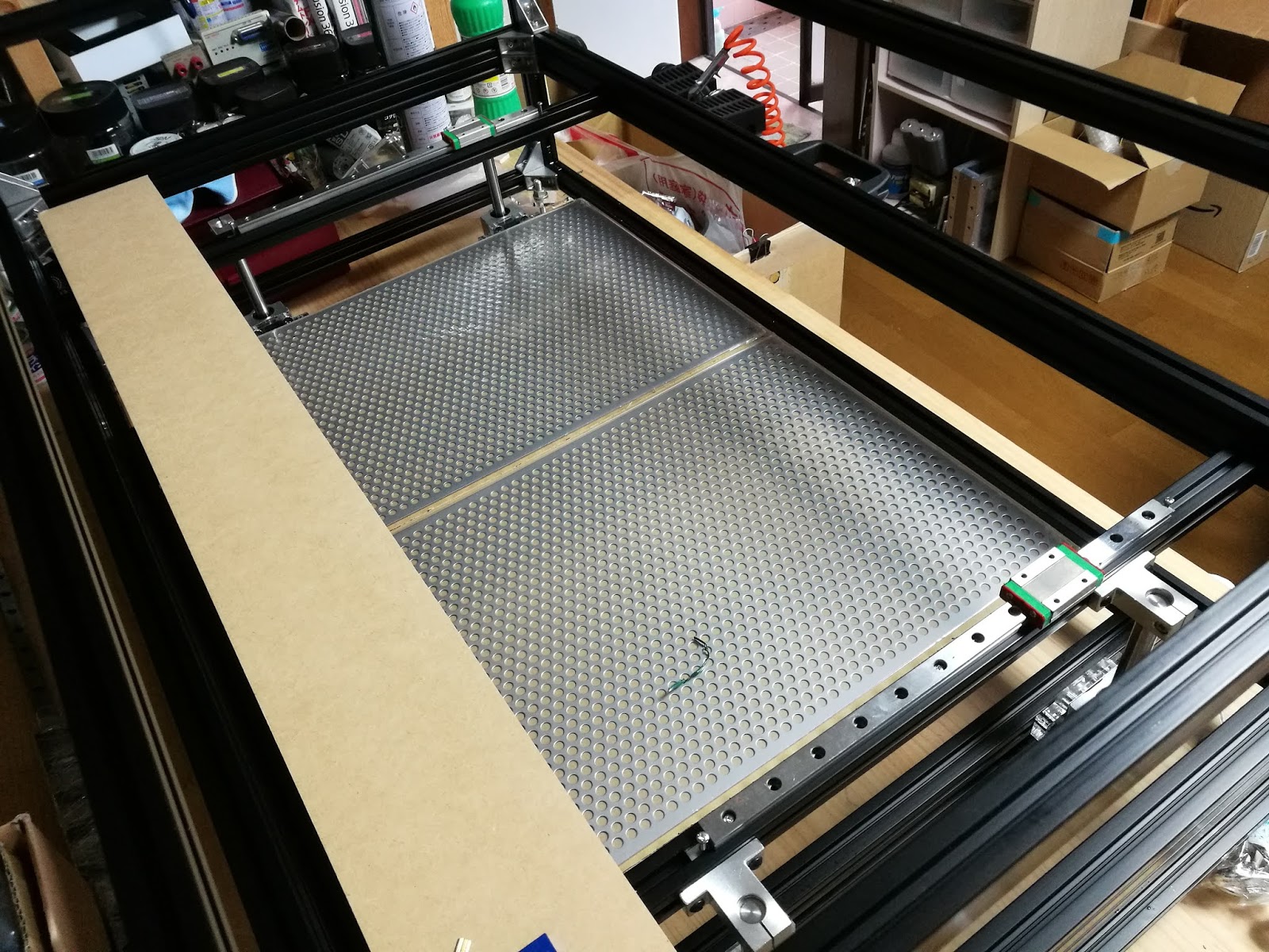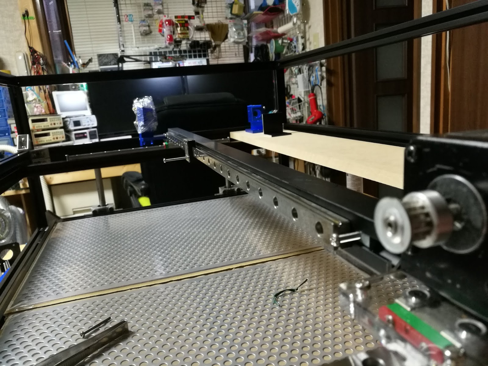今回のレーザ加工機の目標の一つが300x600mmの板を乗せて加工ができるということです。300x600mmの加工範囲が実現できるかどうかは難しいところですが、少なくともステージにこの板が乗らないことには始まりません。