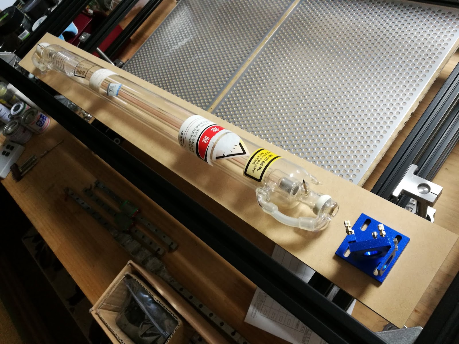 やっぱり最初は40W管かな。このレーザ管は参号機で使っていたものです。寿命的にはまだまだいけるはず。