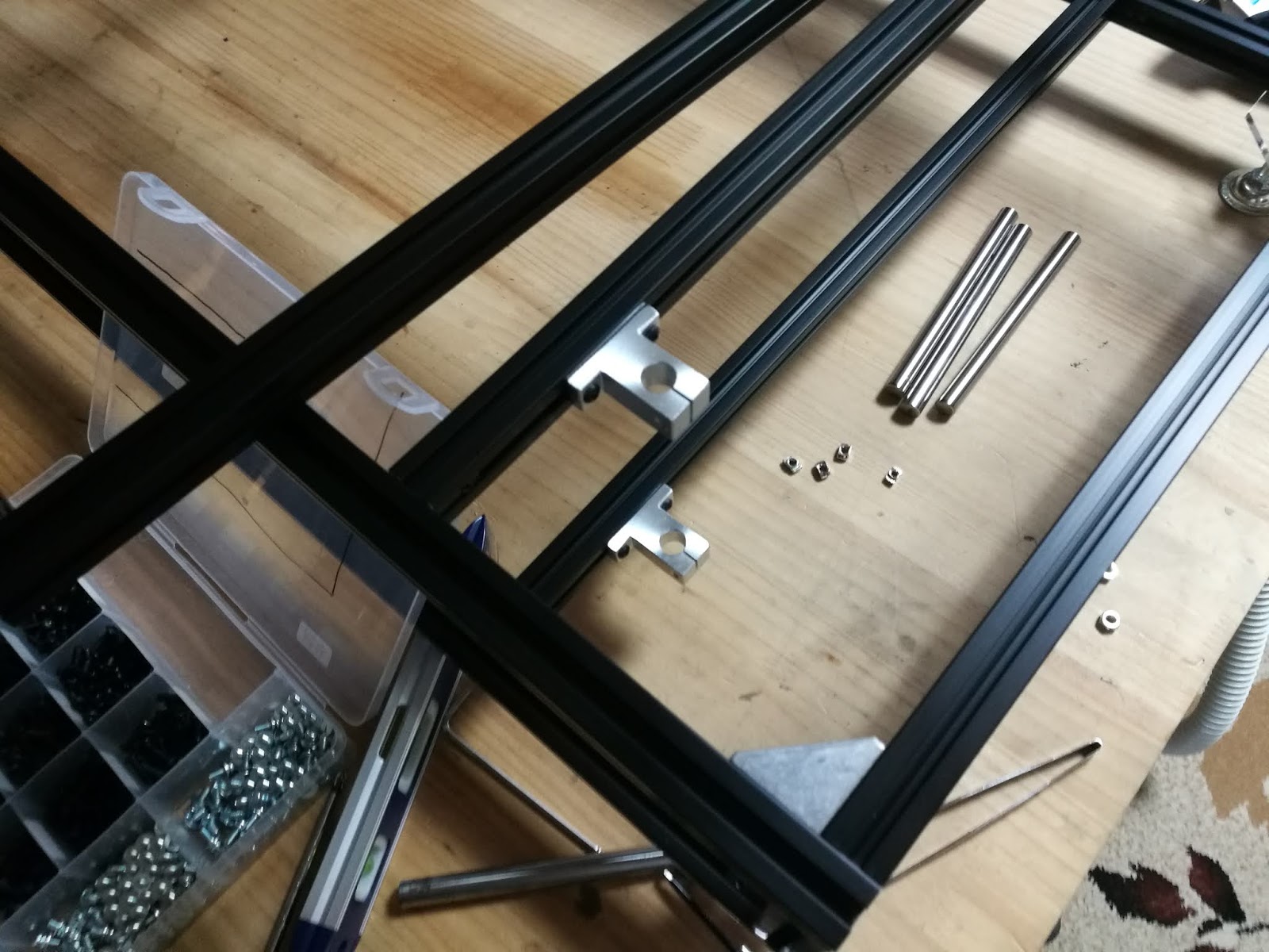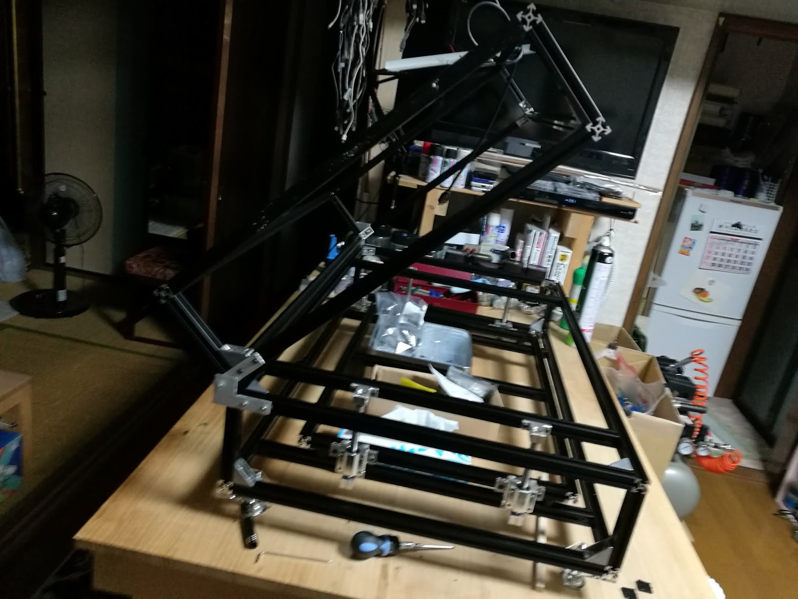 ベースの四隅に柱を立てて、上のフレームを組付けていきます。