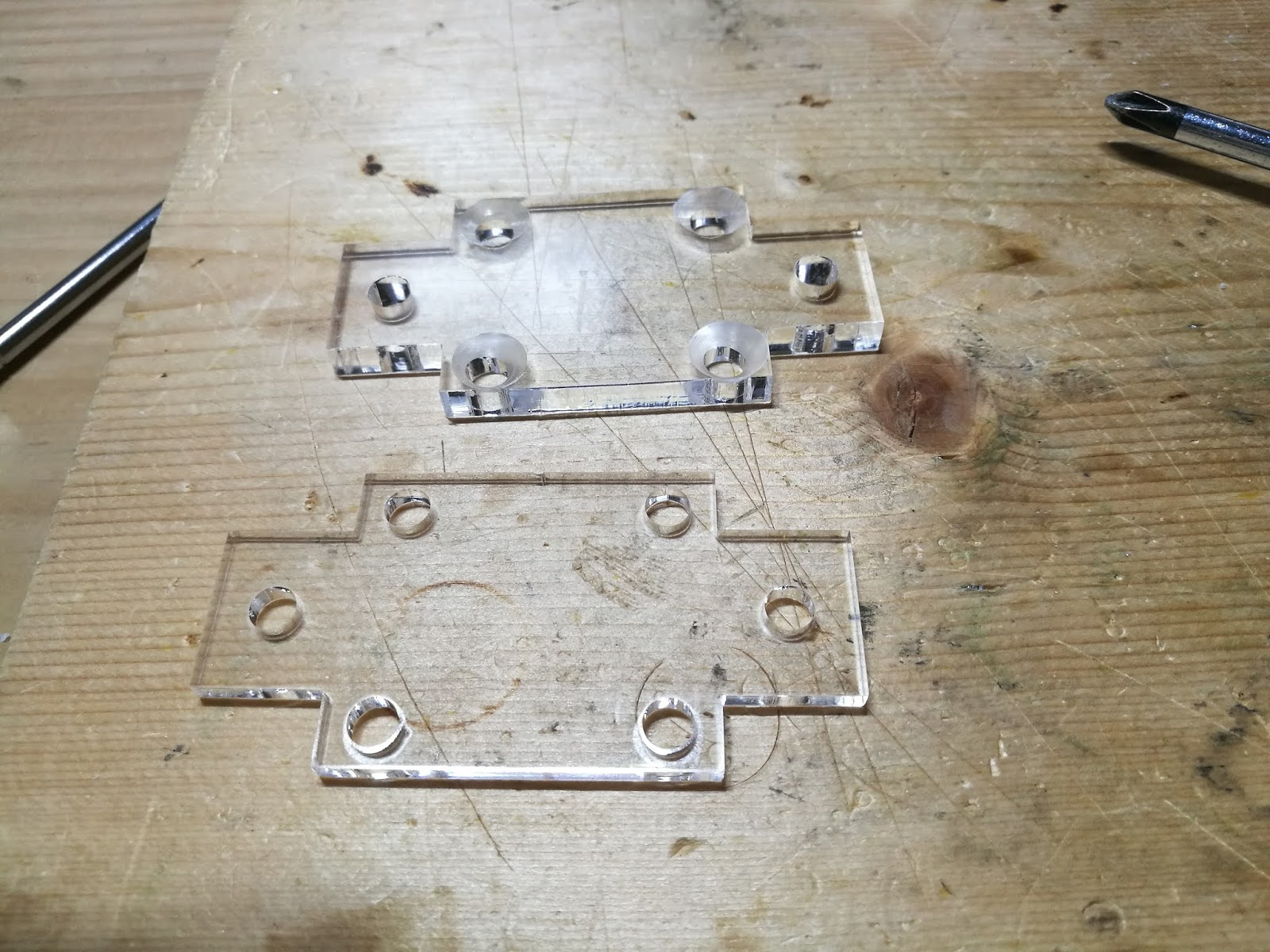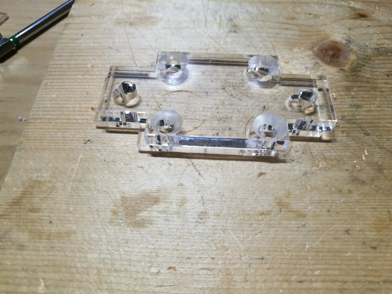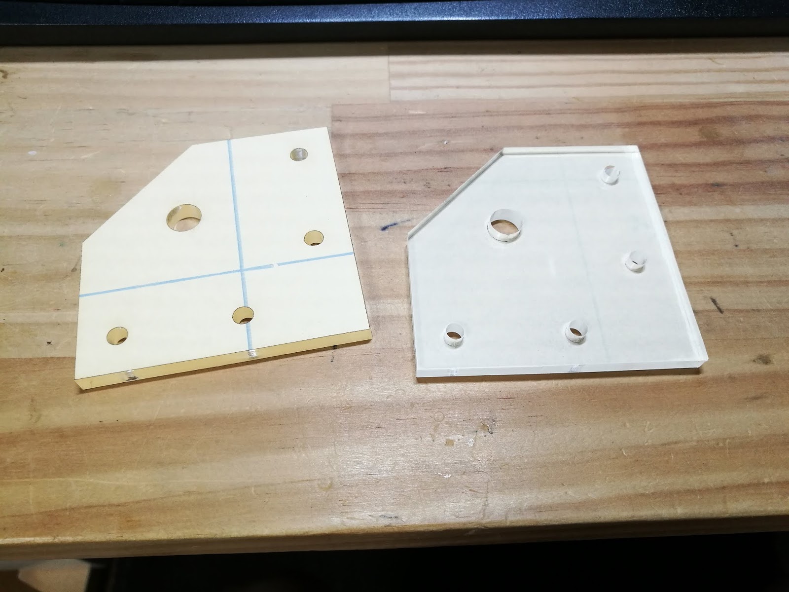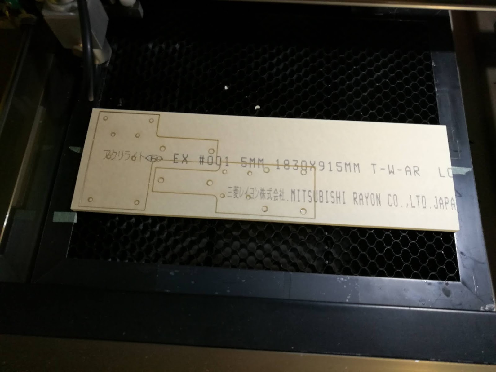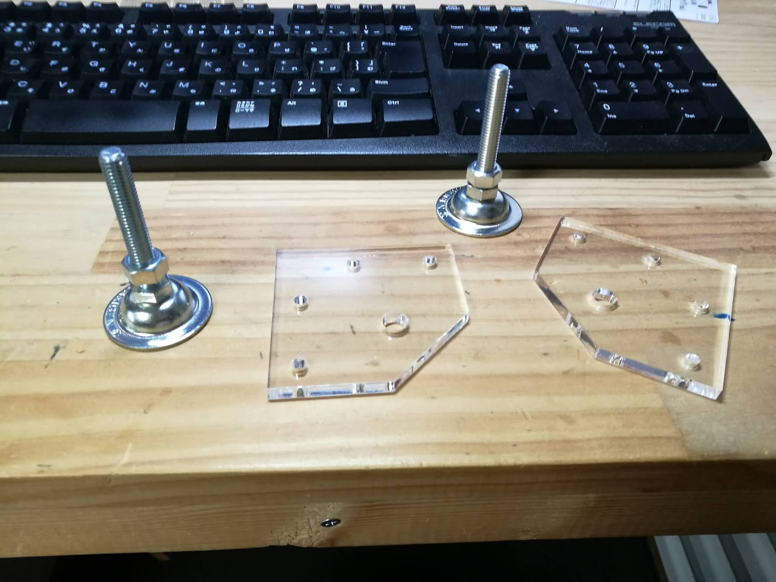 アジャスターの取り付け用のアクリルパーツを切り出します。5mmアクリルで作れば強度的には十分です。