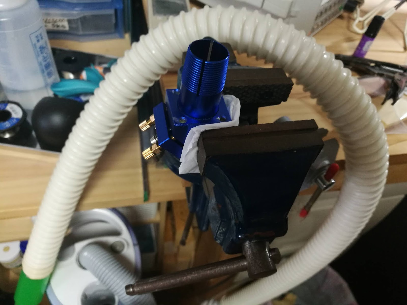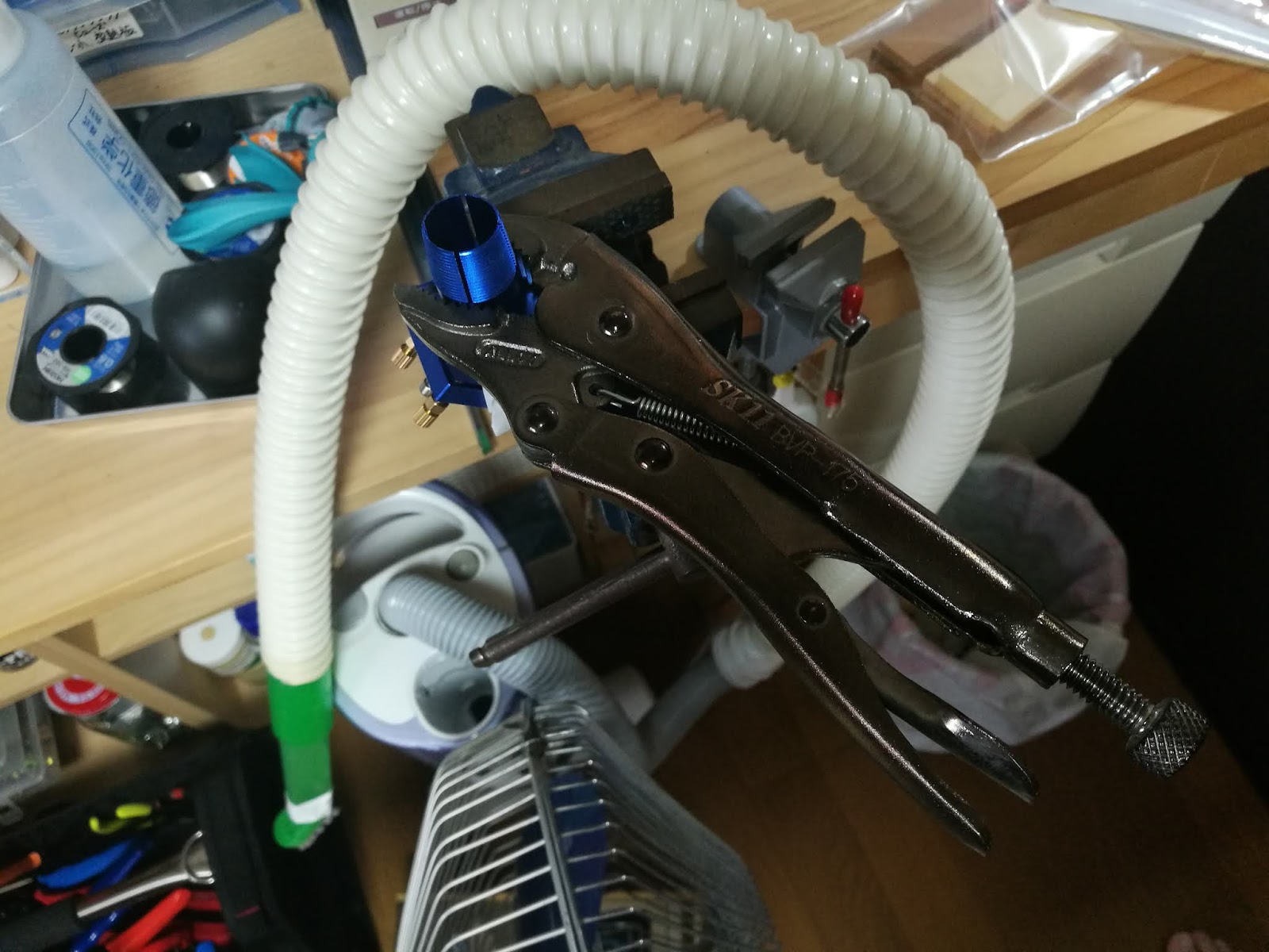 中華加工機みたいにエアチューブを引き回すのはあんまりかっこよくないので、ケーブルガイドを使ってすっきりさせる予定。