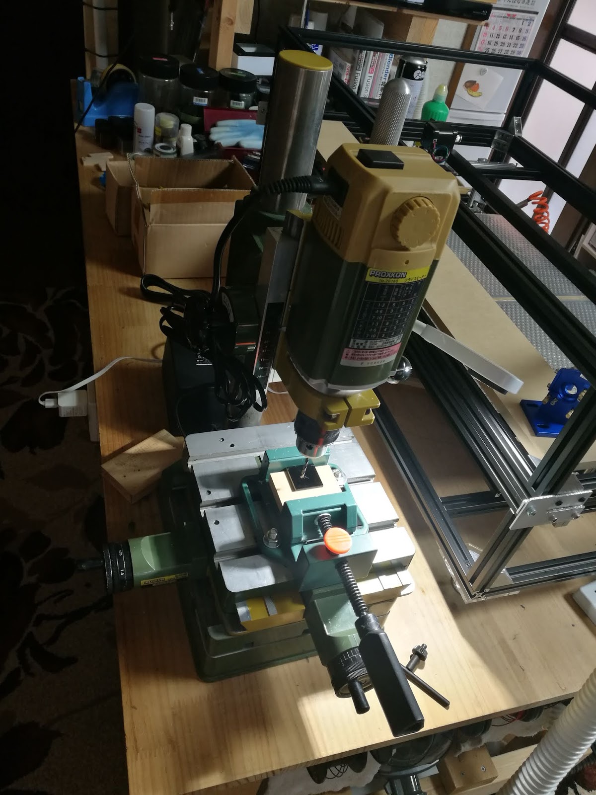 結構位置がシビアな加工になりますので、クロスステージを使ってちゃんと(笑)穴あけしました。