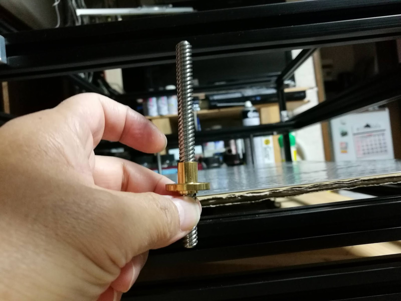 ゴム足の分ストロークが減りますが、まあ問題ないでしょう。最終的にステッピングモータと台形ねじつけたら外すかもしれません。