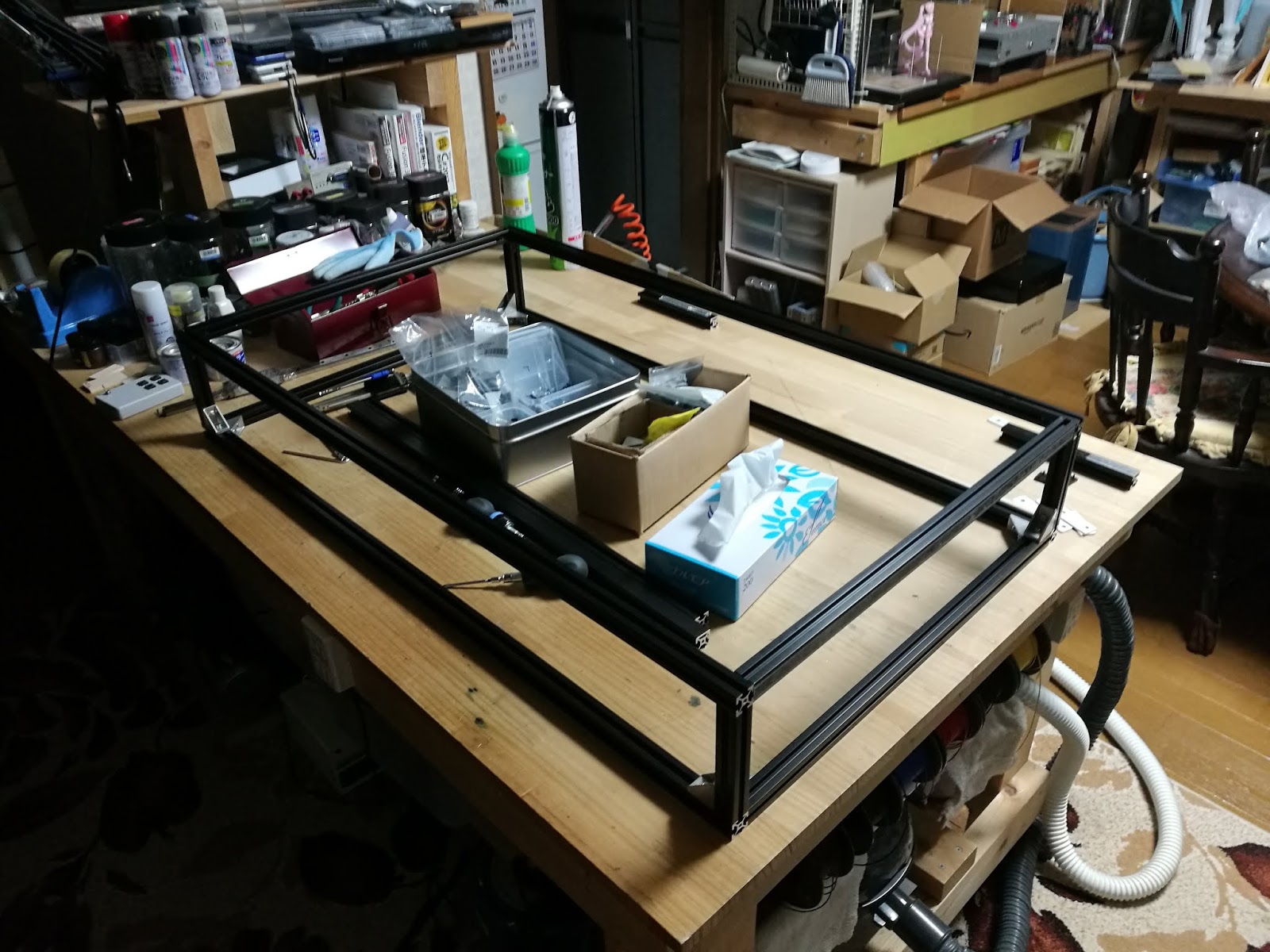この部分には排気ファンやダクトも這いまわりますのである程度の余裕は見ているのですが、これらをしっかり乗せるためには結構大きなテーブルが必要になりそうです。