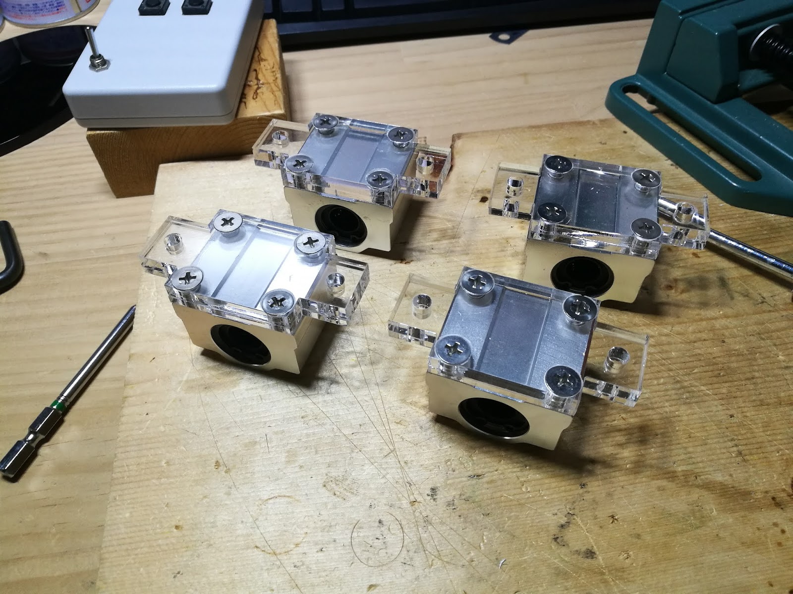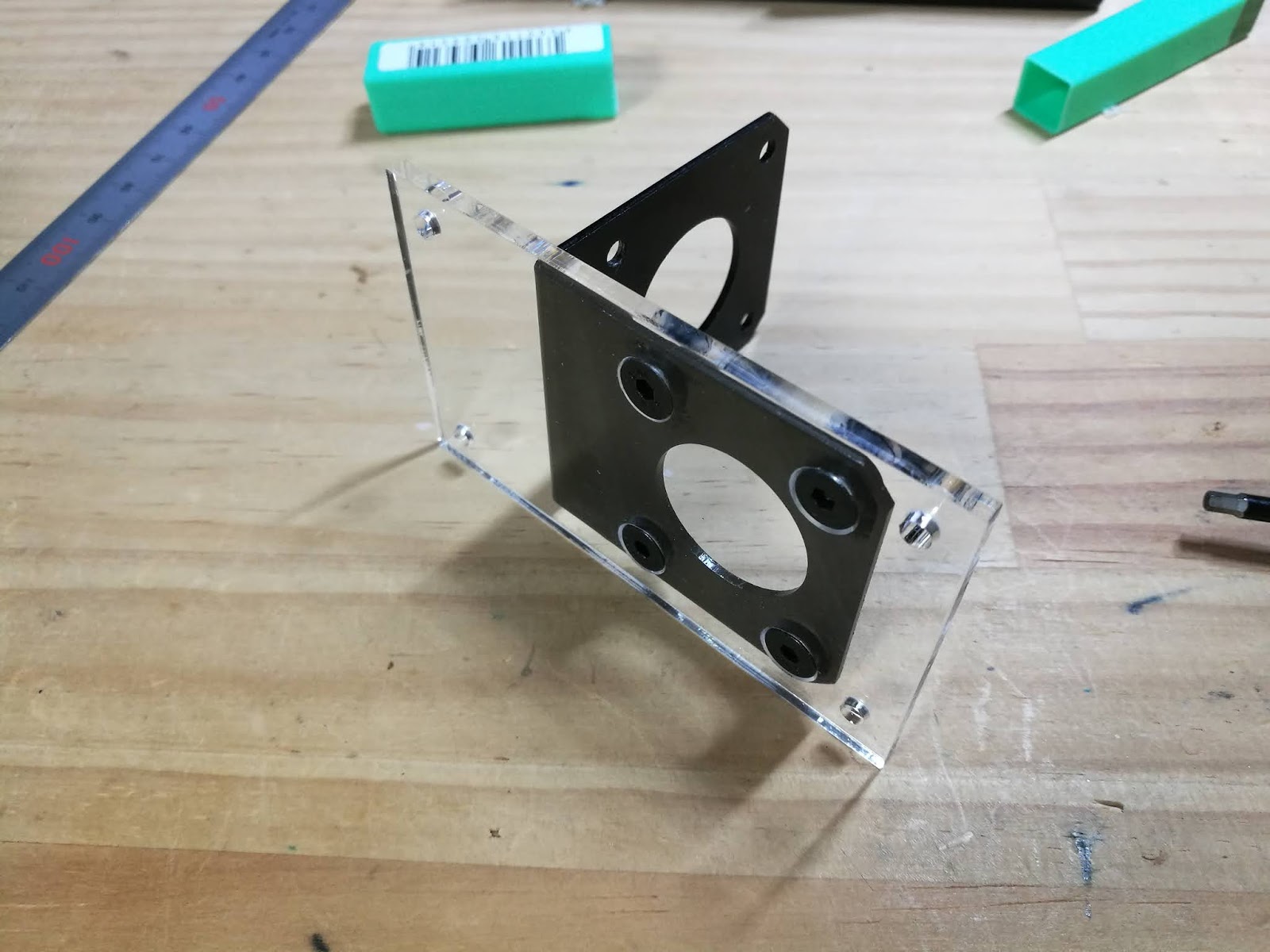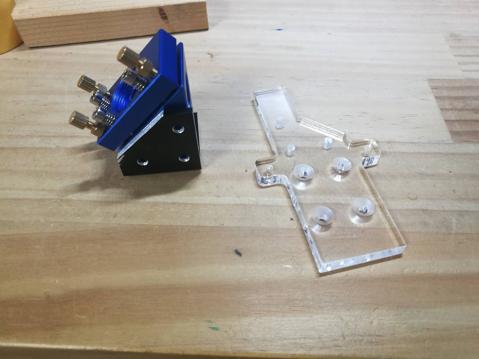 組付けパーツはすべてアクリル板を切り出す前提で設計しています。経験上アルミの強度はいらないことが分かっているのです。