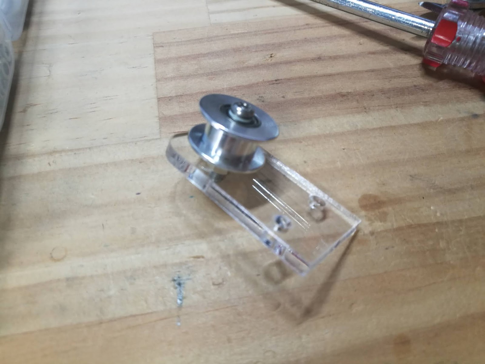 モータ、プーリ、キャリッジをくるりと一周接続し、プーリー位置を動かしてベルトを適切に張ればキャリッジ駆動部分の完成です。